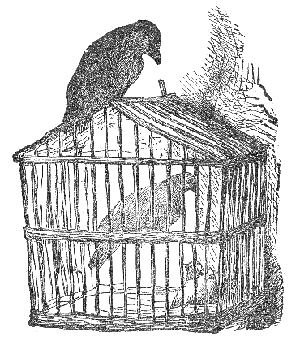 A Dove shut up in a cage was boasting of the large number of the young ones which she had hatched. A Crow, hearing her, said: “My good friend, cease from this unreasonable boasting. The larger the number of your family, the greater your cause of sorrow, in seeing them shut up in this prison-house.”