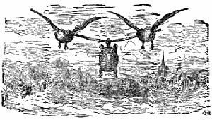 A Tortoise, becoming tired of her humble home, resolved to visit foreign lands, but she did not know which way to go. She repaired to two Ducks to show her the road, and they told her that the best way to travel was through the air. On her imploring their help, they made her grasp a stick with her mouth, and so they bore her aloft. As they flew along, the gaping people beneath shouted at sight of the spectacle. The vain Tortoise mistook their shouts for applause. “I am surely a queen,” said she. But, alas! as she opened her mouth to speak she lost her hold of the stick, and, falling to the ground, was dashed to pieces.
