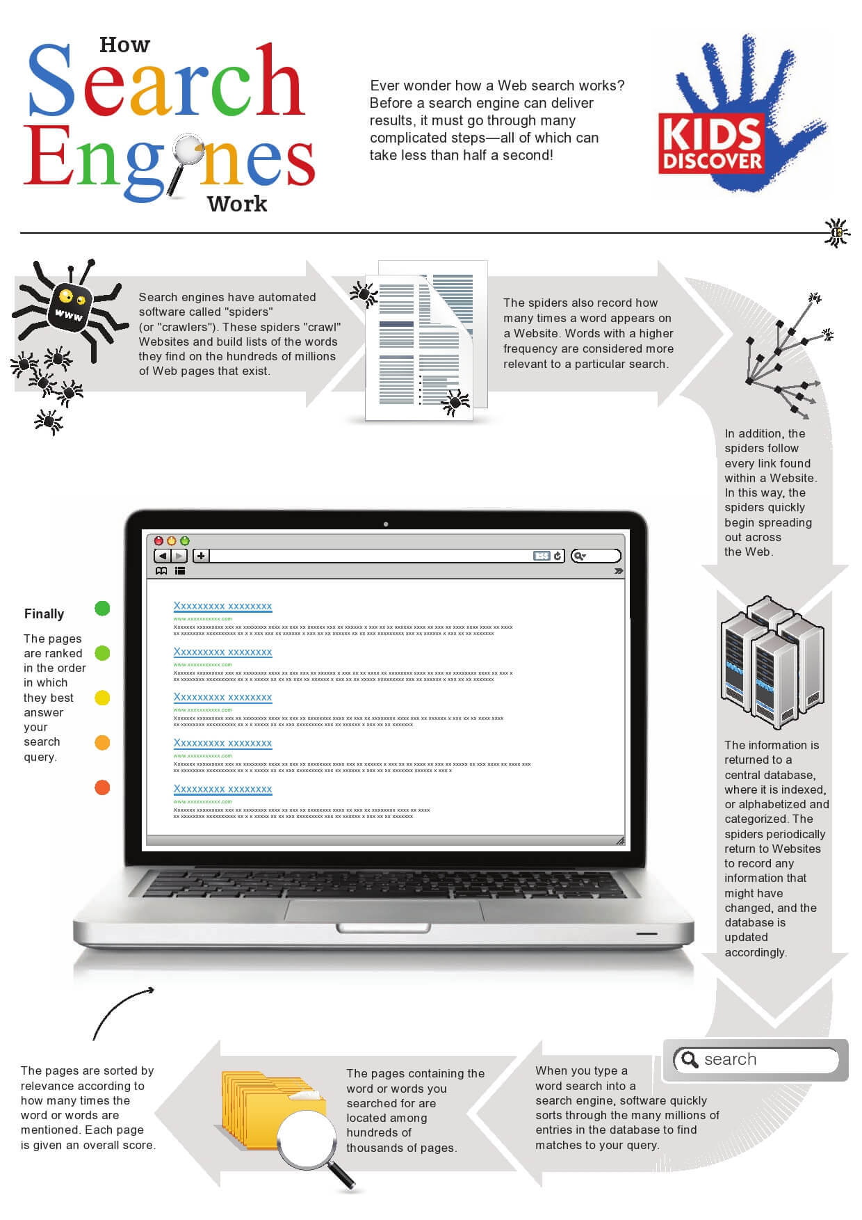 Here’s a quick overview on how search engines work, from Kids Discover. Click here to download this image in PDF, or click on the infographic below to see it in full size.